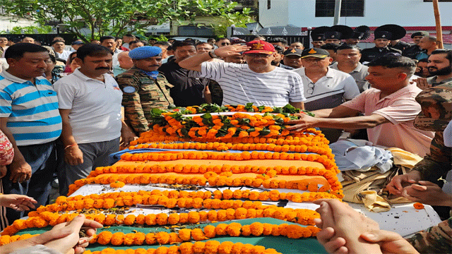 देहरादून: सैनिक कल्याण मंत्री गणेश जोशी ने आज गढ़ी कैंट में नायक सूबेदार सुजीत कुमार प्रधान के पार्थिव शरीर पर पुष्पचक्र अर्पित कर उन्हें भावपूर्ण श्रद्धांजलि दी। इस दौरान सैनिक कल्याण मंत्री ने शहीद के परिजनों का ढाढ़स बंधाया और गहरी शोक संवेदनाएं व्यक्त कीं और राज्य सरकार की ओर से हरसंभव सहायता का आश्वासन दिया।