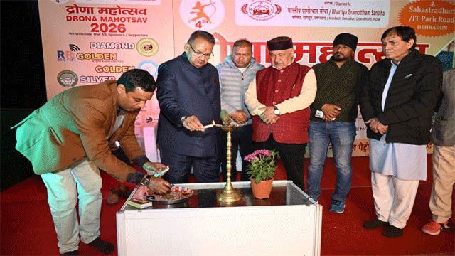 देहरादून: ग्राम्य विकास मंत्री गणेश जोशी ने आज सहस्त्रधारा रोड स्थित एक निजी होटल में भारतीय ग्रामोत्थन संस्था द्वारा आयोजित 10 दिवसीय ‘द्रोण महोत्सव 2026’ में प्रतिभाग किया। इस दौरान मंत्री गणेश जोशी ने विभिन्न स्टोलों का अवलोकन भी किया।