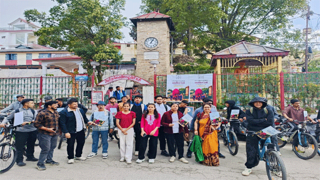 साइकिल रैली चौघानपाटा से प्रारंभ होकर एन.टी.डी., धारानौला, करबला मार्ग से होती हुई पुनः चौघानपाटा पहुंची। पूरे मार्ग में प्रतिभागियों ने पर्यावरण संरक्षण, स्वच्छता एवं सांस्कृतिक जागरूकता का संदेश दिया।