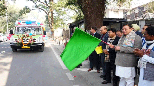 देहरादून: मुख्यमंत्री श्री पुष्कर सिंह धामी ने आज मुख्यमंत्री कैम्प कार्यालय से “ग्रामीण गढ़वाल समग्र स्वास्थ्य सेवा परियोजना” के अंतर्गत मोबाइल मेडिकल यूनिट वाहनों का फ्लैग‑ऑफ किया। यह परियोजना ग्राफिक एरा इंस्टीट्यूट ऑफ मेडिकल साइंसेज एवं हॉस्पिटल, देहरादून ने मुख्यमंत्री की प्रेरणा से शुरु की है।