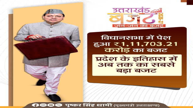 मुख्यमंत्री पुष्कर सिंह धामी ने एक लाख करोड़ रुपए से अधिक का बजट पेश किया