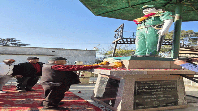 अल्मोड़ा: सैनिक कल्याण मंत्री गणेश जोशी ने कुमाऊं दौरे के दौरान आज अल्मोड़ा जनपद के दन्या बाजार पहुंचकर पूर्व थल सेना प्रमुख जनरल स्व. विपिन चंद्र जोशी की प्रतिमा पर पुष्पांजलि अर्पित की और उन्हें श्रद्धांजलि दी। इस दौरान मंत्री जोशी ने जनरल जोशी के अदम्य साहस, नेतृत्व क्षमता और राष्ट्र सेवा को स्मरण करते हुए कहा कि उनका योगदान सदैव देशवासियों को प्रेरित करता रहेगा। उन्होंने कहा कि जनरल विपिन चंद्र जोशी ने भारतीय सेना को मजबूती प्रदान करने के साथ ही उत्तराखंड की वीर परंपरा को देशभर में गौरवान्वित किया। उनकी देशभक्ति, अनुशासन और कर्तव्यनिष्ठा आने वाली पीढ़ियों के लिए मार्गदर्शन का कार्य करेगी।