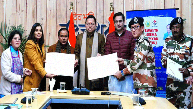 देहरादून: मुख्यमंत्री श्री पुष्कर सिंह धामी की उपस्थिति में आज मुख्यमंत्री आवास में उत्तराखण्ड शासन एवं भारत–तिब्बत सीमा पुलिस (आईटीबीपी) के मध्य स्वस्थ सीमा अभियान के अंतर्गत एक महत्वपूर्ण समझौता ज्ञापन (MoU) पर हस्ताक्षर किए गए। इस अवसर पर स्वास्थ्य मंत्री डॉ. धन सिंह रावत एवं कैबिनेट मंत्री श्री सौरभ बहुगुणा भी उपस्थित रहे।